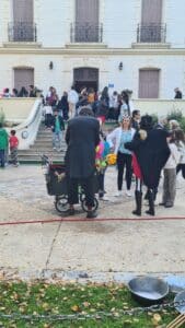 Grace à une météo clémente, nous avons pu installer tables et chaises devant le château et sur la pelouse.